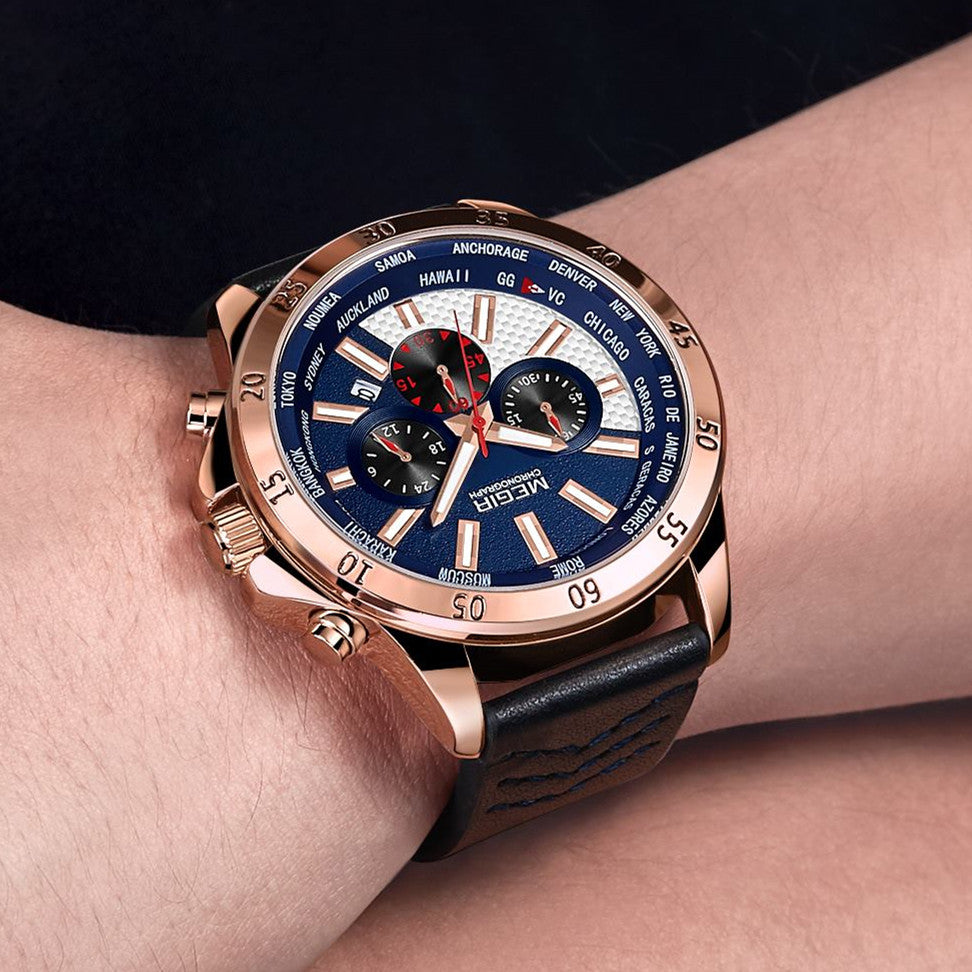 MEGIR Sports Watches for Mens Luxury Quartz Clock Chronograph Leather Fashion Casual Wristwatch Army Military Watch Reloj Hombre